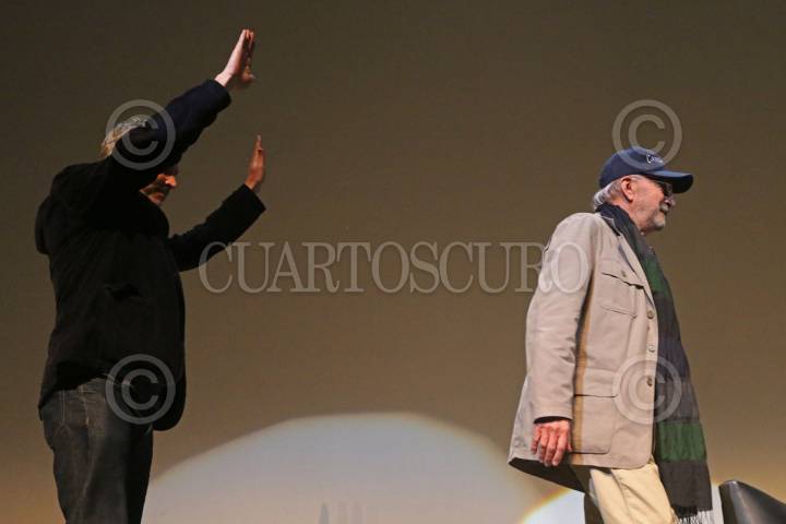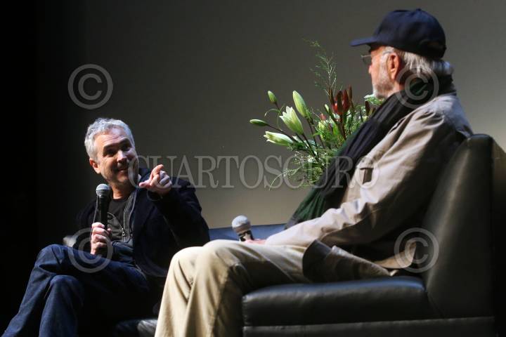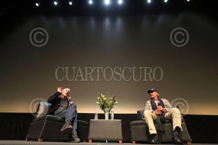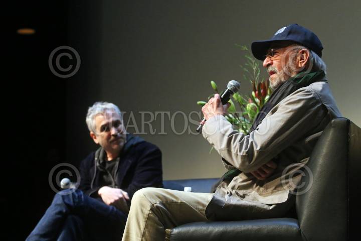 GUADALAJARA, JALISCO. 09MARZO2016.- Alfonso Cuarón (Director) y Felipe Cazals (Director) durante una charla que sostuvieron en el Teatro Diana con asistentes a la proyección de la película “Canoa” misma que celebra el 40 aniversario desde su producción, esto en el marco de la edición 31 del Festival Internacional de Cine en Guadalajara FICG. FOTO : FERNANDO CARRANZA GARCIA / CUARTOSCURO.COM
