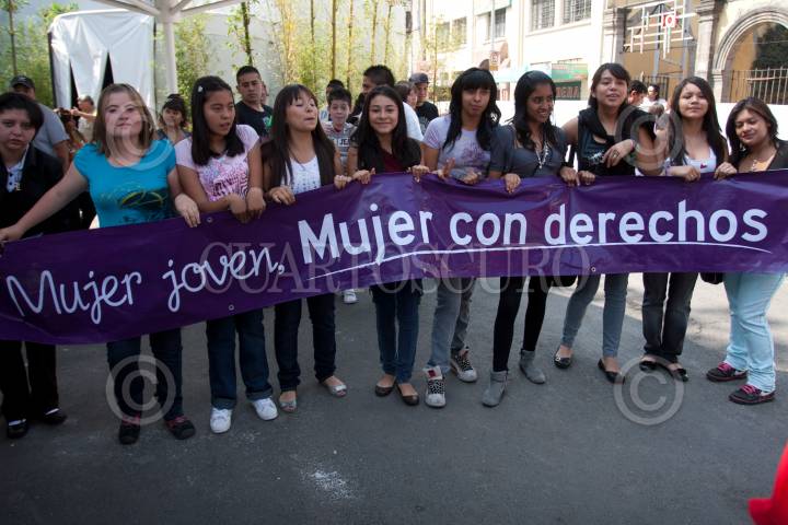 MÉXICO D.F., 06MARZO2011.- Aproximadamente 150 quinceañeras del Instituto de la Juventud del Distrito Federal (InjuveDF) que celebrarán su fiesta el próximo 30 de abril, fueron presentadas en la muestra Ciudad feliz, ciudad joven celebrada en el corredor peatonal Doctor Mora, y pidieron a las autoridades disminuir la violencia y la inseguridad generada tanto en la escuela, como en la calle. FOTO: GUILLERMO PEREA/CUARTOSCURO.COM