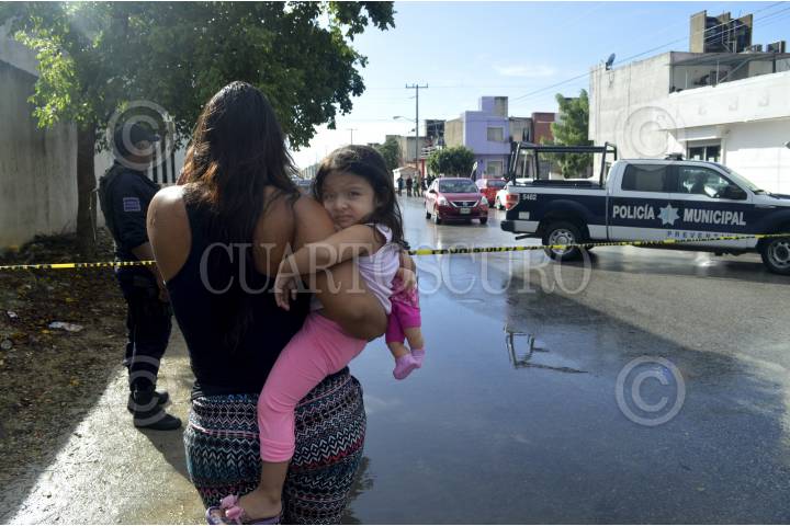 CANCÚN, QUINTANA ROO, 06NOVIEMBRE2015.- En plena crisis por violencia y asesinatos contra mujeres, que el Gobierno de Quintana Roo se ha negado a reconocer como feminicidios, la mañana de este viernes fue hallado el cuerpo de otra fémina asesinada en el interior de una vivienda en el fraccionamiento Paseos Kabah, de la Región 223 en Cancún. Versiones preliminares, dadas a conocer por la radio oficial del Gobierno señalan que la mujer estaba desnuda sobre la cama, presuntamente estrangulada. No se ha confirmado si sufrió ataque sexual. La mujer sería una maestra de zumba identificada con el nombre de Deysi del Rosario, de 31 años de edad. De hecho, en la vivienda donde fue hallado su cuerpo tenía un espacio habilitado para dar clases, por lo que fueron sus alumnas las que encontraron el cadáver poco antes de las nueve de la mañana de este viernes. Al lugar acudieron policías municipales y elementos de la Procuraduría General de Justicia para iniciar las investigaciones del caso. El asesinato de la mujer es el tercero en esta semana y el quinto en las últimas tres semanas en Cancún. FOTO: ELIZABETH RUIZ /CUARTOSCURO.COM
