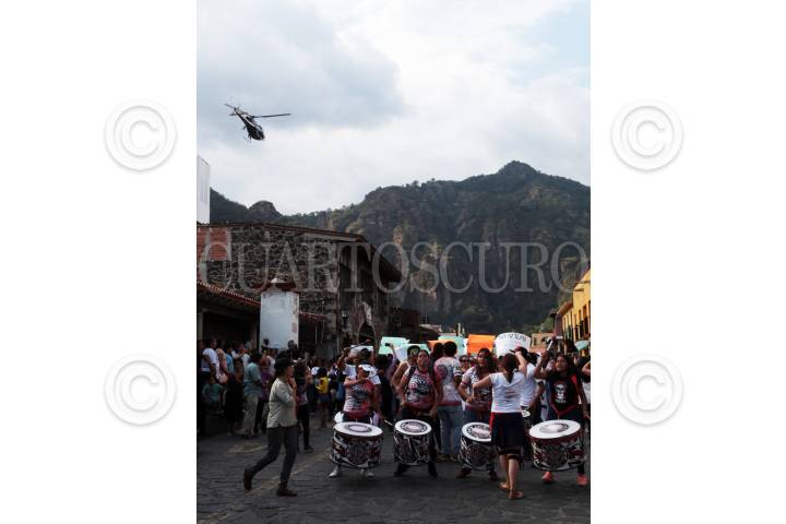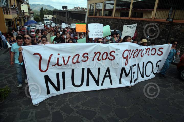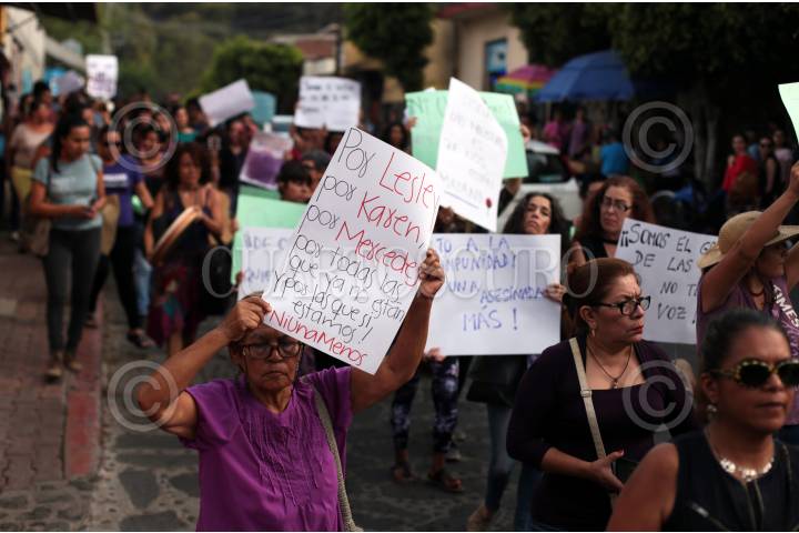 TEPOZTLAN, MORELOS, 10JUNIO2018.- Marcha contra los Feminicidios realizada esta tarde por las calles de este municipio, donde en el ultimo mes se han registrado tres casos. El pasado miércoles se localizó el cadáver calcinado de una estudiante de odontología en un paraje de este pueblo mágico. Durante la marcha, el helicóptero de la Comisión Estatal de Seguridad Publica FOTO: MARGARITO PÉREZ RETANA /CUARTOSCURO.COM