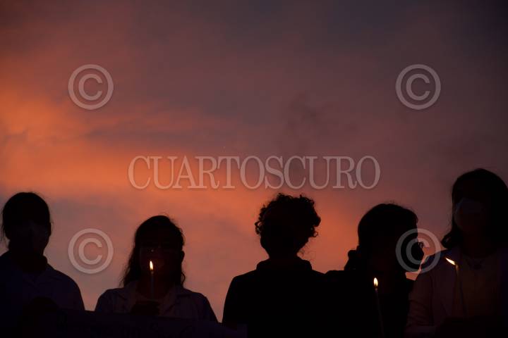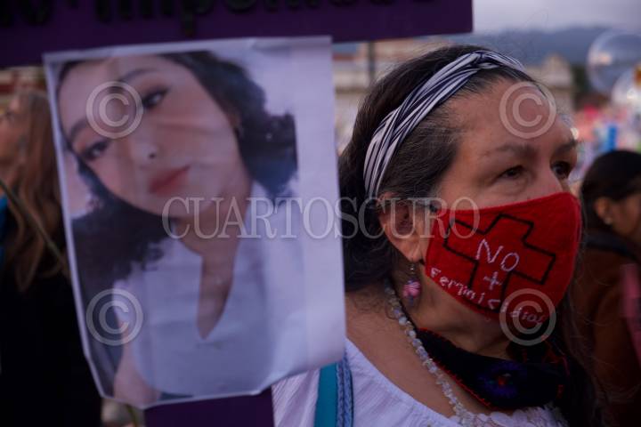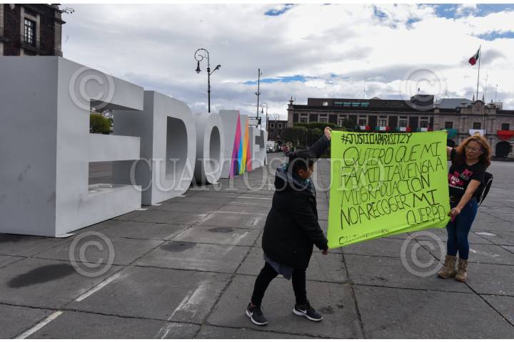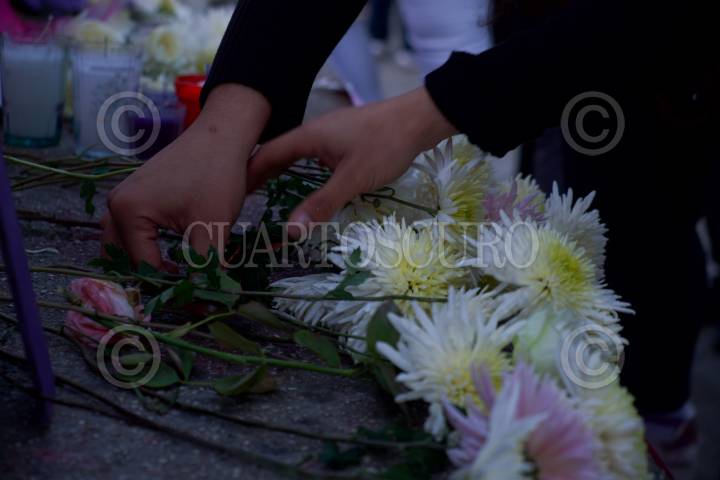 Lorena Gutierrez madre de Fátima Quintana acompañada por Familiares de víctimas de feminicidios instalaron un Memorial en la Plaza de los Mártires.