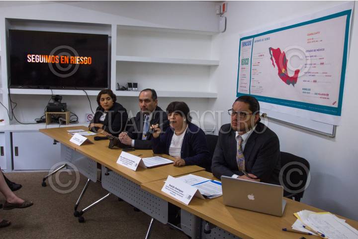MÉXICO, D.F., 29ABRIL2015.- Chasel Colorado, Amnistia Internacional México junto a Maria de la Luz Estrada integrantes de las organizaciones Catolicas por el Derecho a Decidir y Observatorio Ciudadano Nacional del Feminicidio y Rodolfo Domiguez de justicia, Derechos Humanos y Genero del observatorio Ciudadano Nacional del Feminicidio, durante la conferencia que realizaron en las instalaciones de Amnistia Internacional para dar un reporte sobre los feminicidios registrados en el pais. FOTO: ENRIQUE ORDÓÑEZ /CUARTOSCURO.COM