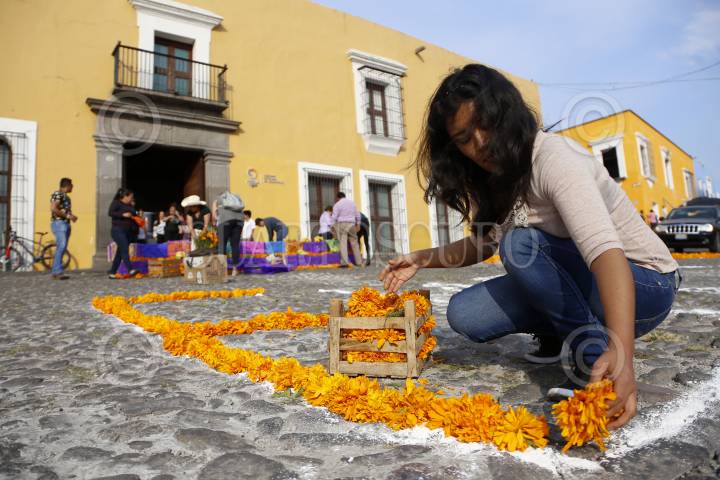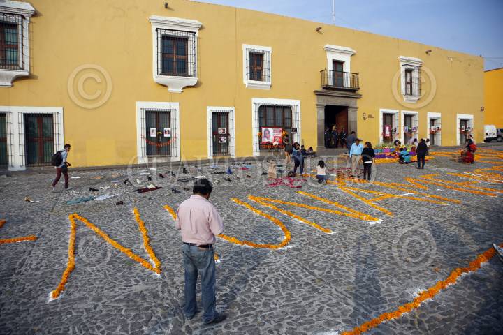 PUEBLA, PUEBLA, 31OCTUBRE2017.- Integrantes de colectivos sociales y sociedad civil, colocaron una ofrenda fuera de la sede de gobierno estatal; en honor a las 88 víctimas de feminicidio en Puebla en lo que va del año. FOTO: HILDA RÍOS/ CUARTOSCURO.COM