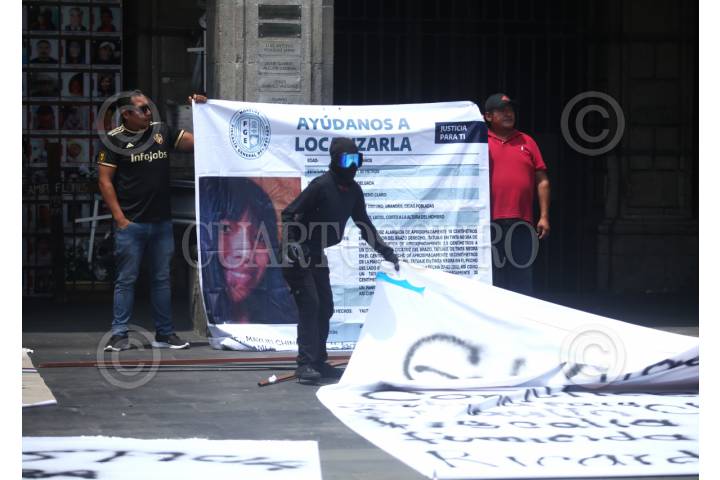 CUERNAVACA, MORELOS, 07SEPTIEMBRE2025.- Familiares y amigos de la joven Andrea Maylin Chino Ramos de 22 años protestan en los portales del Palacio de Gobierno exigiendo justicia en el feminicidio. La joven fue reportada como desaparecida el pasado 20 de junio en el municipio de Yautepec y era madre de una niña de año y medio de edad y presuntamente fue asesinada por su pareja sentimental el cual la inhumo en un terreno de Yautepec. Los padres de la victima acusan falta de profesionalismo de la Fiscalía de Justicia ya que no han clasificado el caso como feminicidio, además de tratar de encubrir al asesino y su familia, también exigen una audiencia con la gobernadora. FOTO: MARGARITO PÉREZ RETANA/CUARTOSCURO.COM