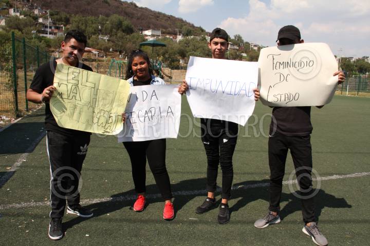 ECATEPEC, ESTADO DE MÉXICO, 08MARZO2019.- Alumnos de la preparatoria 128 Francisco Villa organizaron una protesta con motivo del Día Internacional de la Mujer, exigiendo el alto a los feminicidios en la comunidad de San Pedro. FOTO: ROGELIO MORALES /CUARTOSCURO.COM