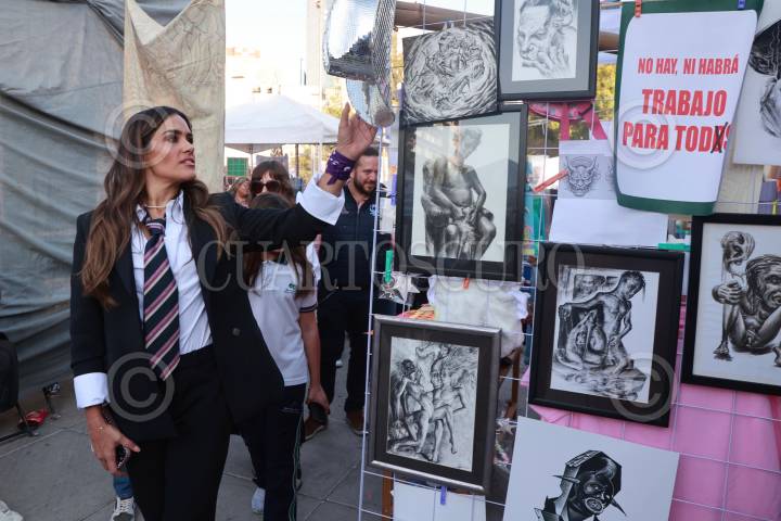CIUDAD DE MÉXICO, 07FEBRERO2025. La alcaldesa de Cuauhtémoc, Alessandra Rojo de la Vega recorre la Feria de Arte Independiente a Cielo Abierto (FERAL), que estara instalada en el Monumento a la Madre los días 7, 8 y 9 de febrero, donde se concentrarán proyectos, iniciativas y galerías de arte independiente. FOTO: EDGAR NEGRETE LIRA/CUARTOSCURO.COM