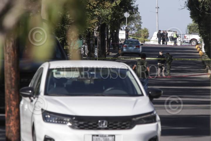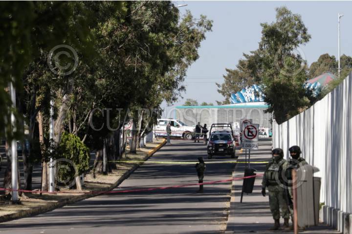 PUEBLA, PUEBLA, 12ABRIL2025.- Localizan cuatro cadáveres dentro de una camioneta en la zona de Los Fuertes, cerca de donde se instalan los juegos de la Feria de Puebla 2025. Los cuerpos fueron abandonados junto con una cartulina con la leyenda "Bienvenidos a la Feria de Puebla". FOTO: MIREYA NOVO/CUARTOSCURO.COM