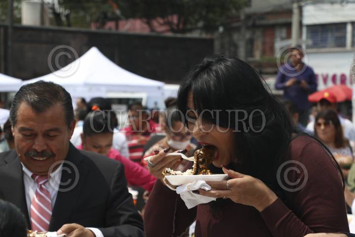 CIUDAD DE MÉXICO, 04SEPTIEMBRE2017.- Con la realización de una enchilada de más de cien metros de longitud, arrancó la Feria de la Enchilada 2017, en la delegación Iztapalapa, en donde Dione Anguiano, titular de la demarcación, disfrutó también del típico alimento mexicano. FOTO: ISAAC ESQUIVEL /CUARTOSCURO.COM