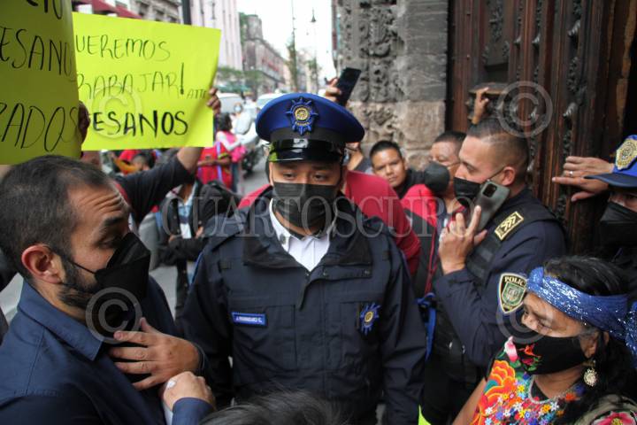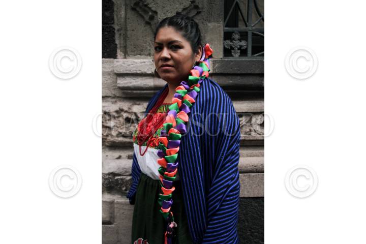 Florentina Santiago Ruíz, representante de la comunidad zapoteca e indígenas dediferentes comunidades protestaron afuera del Archivo Histórico de la Ciudad de México para exigir por los artesanos rechazados que no participaran en la próxima Feria de las Culturas Indígenas, Pueblos y Barrios Originarios