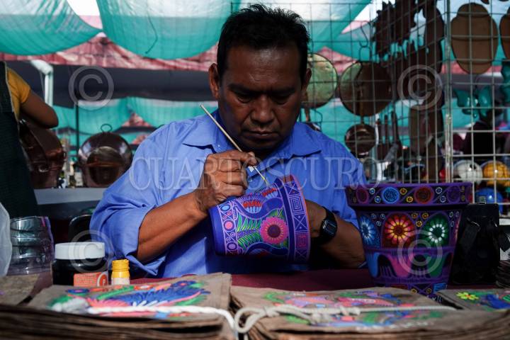 El pintor Jorge Domínguez Cruz. durante la conferencia de la IX Fiesta de las Culturas indígenas, pueblos Barrios originarios de la Ciudad de México 2023 que se llevara a cabo del 4 al 20 de agosto y será conformado por 8 barrios y Colombia como país invitado.