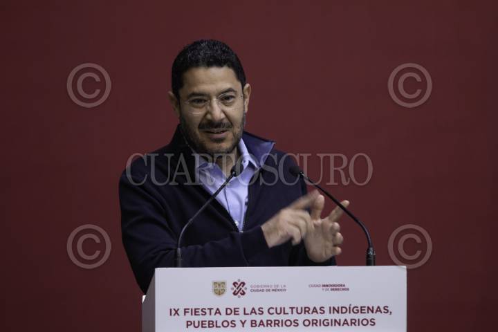 Martí Batres Guadarrama, jefe de gobierno de la Ciudad durante la conferencia de la IX Fiesta de las Culturas indígenas, pueblos Barrios originarios de la Ciudad de México 2023 que se llevara a cabo del 4 al 20 de agosto y será conformado por 8 barrios y Colombia como país invitado. El cartel estuvo a manos de Jorge Domínguez Cruz.