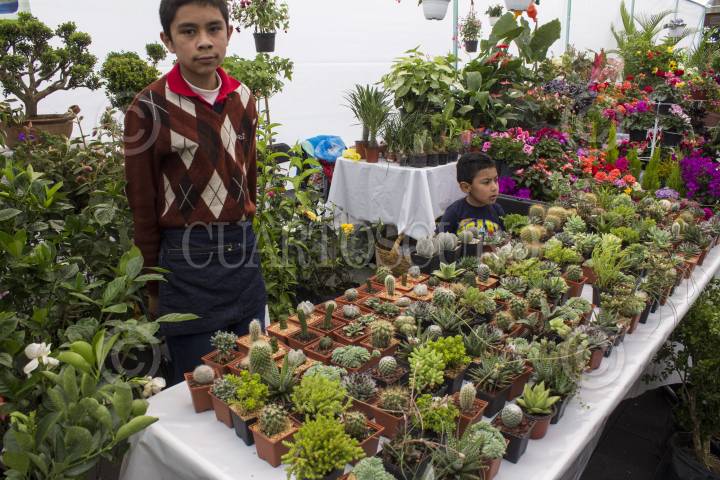 MEXICO, D.F., 12JULIO2014.- Hoy inició la edición 157 de la Feria de las Flores en el Parque de la Bombilla, de la delegación Álvaro Obregón. A la feria acuden productores de plantas y flores de la Delegación Xochimilco, Milpa Alta y otras delegaciones del Distrito Federal. En la imagen, vendedores de cactaceas en dicha feria. FOTO: DAVID POLO /CUARTOSCURO.COM