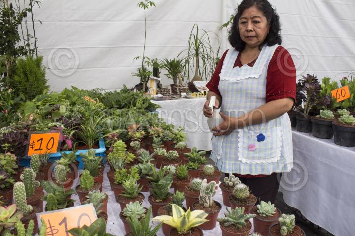 MEXICO, D.F., 12JULIO2014.- Hoy inició la edición 157 de la Feria de las Flores en el Parque de la Bombilla, de la delegación Álvaro Obregón. A la feria acuden productores de plantas y flores de la Delegación Xochimilco, Milpa Alta y otras delegaciones del Distrito Federal. En la imagen, una vendedora de plantas procendente del norte de la Ciudad. FOTO: DAVID POLO /CUARTOSCURO.COM