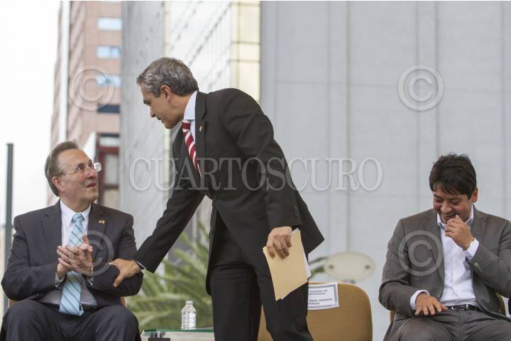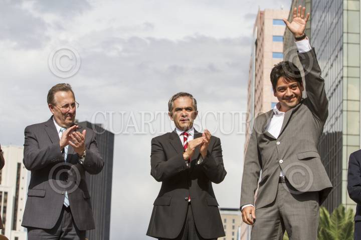MÉXICO, D.F., 27JUNIO2013.- Anthony Wayne, embajador de Estados Unidos en nuestro país, Miguel Ángel Mancera, jefe de Gobierno local, y Alejandro Fernández, jefe delegacional de la Cuauhtémoc, durante la ceremonia de inauguración de la Feria de los Museos en el Monumento a la Revolución. FOTO: ISAAC ESQUIVEL /CUARTOSCURO.COM