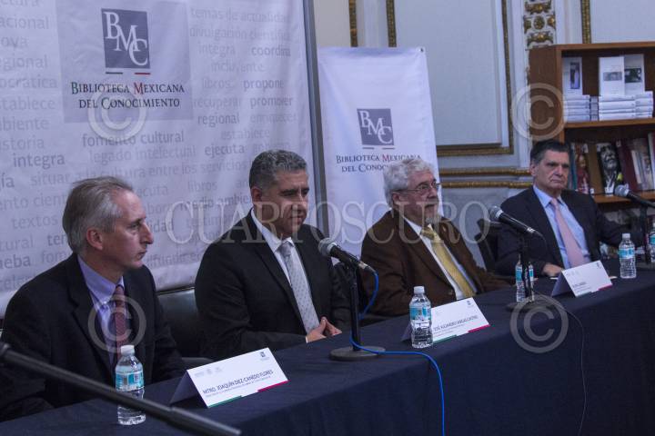 MÉXICO, D.F., 18FEBRERO2015.- Joaquin Diez-Canedo Flores, Director de la Comisión de Libros de Texto Gratuito junto a José Alejandro Vargas Coordinador General del Programa Editorial del Gobierno de la República durante la inauguración de la Biblioteca del conocimiento en la Capilla de Palacio de Mineria. FOTO: ENRIQUE ORDÓÑEZ /CUARTOSCURO.COM