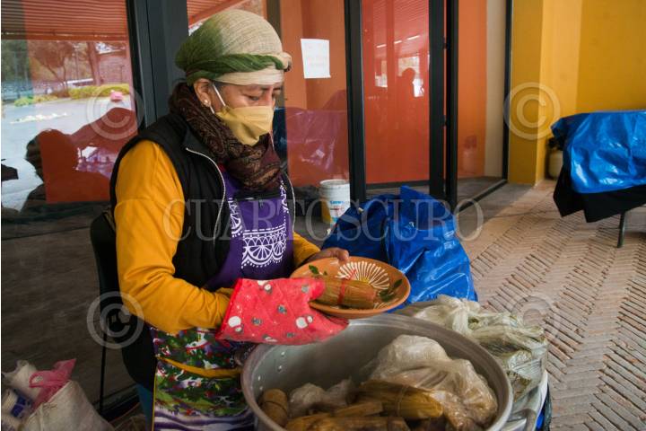 Venta de tamales en la feria que se lleva a cabo en la Alcaldía Venustiano Carranza.