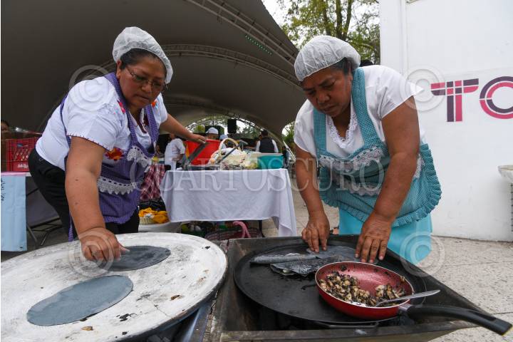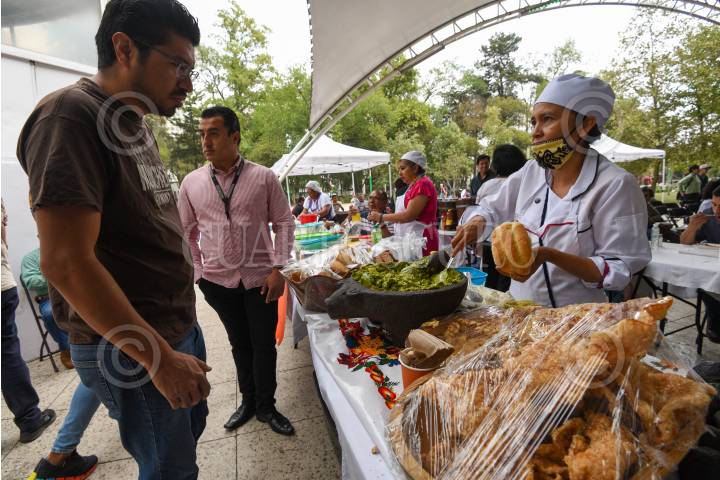 TOLUCA, ESTADO DE MÉXICO, 29MAYO2024.- En el Parque Cuauhtémoc Alameda Central se lleva a cabo una Feria Gastronómica en donde los asistentes pudieron disfrutar de alimentos como mole, taco de plaza, tamales, chorizo, aguacatortas, huaraches, entre otras cosas, la feria estará solo este 29 y 30 de mayo. FOTO: CRISANTA ESPINOSA AGUILAR /CUARTOSCURO.COM