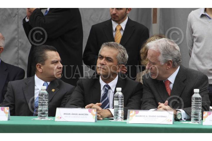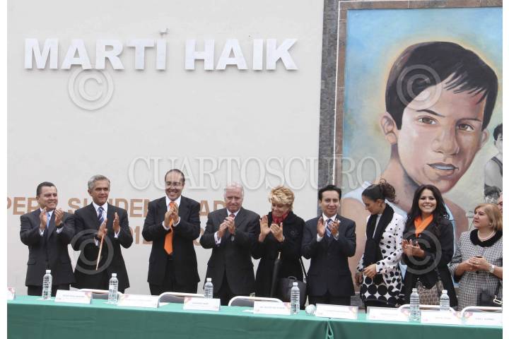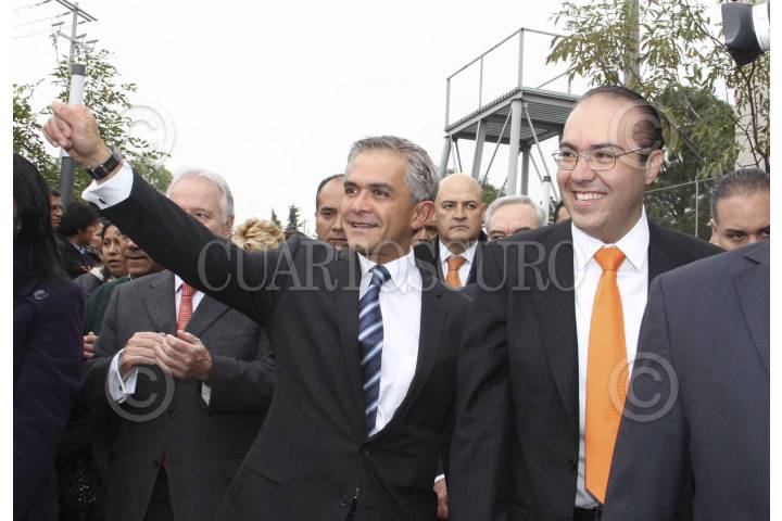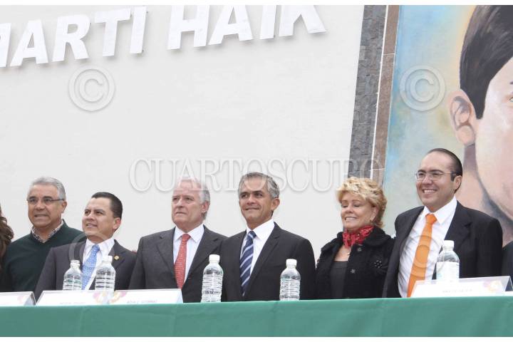 MÉXICO, D.F., 05NOVIEMBRE2012.- Miguel Ángel Mancera, jefe de gobierno electo junto a Alejandro Marti, presidente de SOS durante la inauguración la alberca semiolímpica "Fernando Martí Haik''. FOTO: CUARTOSCURO.COM