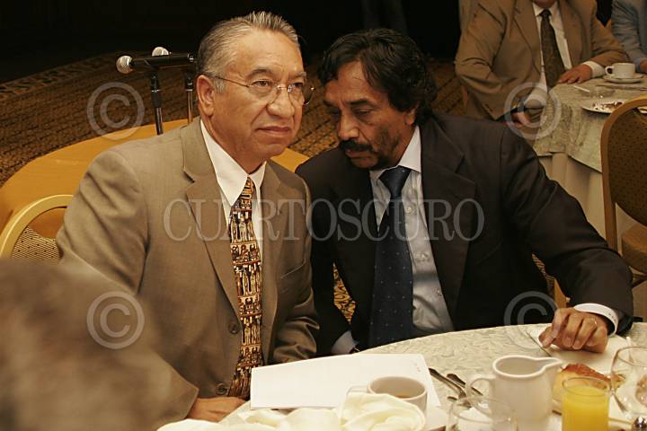 MEXICO, D.F. 17AGOSTO2005.- Carlos Aceves del Olmo, integrante de la CTM y Víctor Flores, líder ferrocarrilero, durante la Reunión de los titulares de la CROC y el Congreso del Trabajo, en un hotel conocido del paseo de la reforma. FOTO: Osvlado Aguilar/CUARTOSCURO.COM