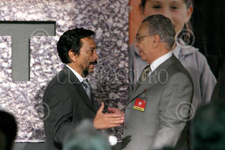 MEXICO, D.F., 20ABRIL2006.- Víctor Flores, lider ferrocarrilero y Joaquin Gamboa Pascoe, líder de la CTM, durante la ceremonia de la XC Sesión Ordinaria de la Honorable Asamblea General del INFONAVIT, en su sede nacional. FOTO: Moisés Pablo/CUARTOSCURO.COM