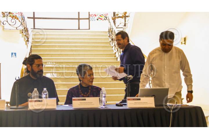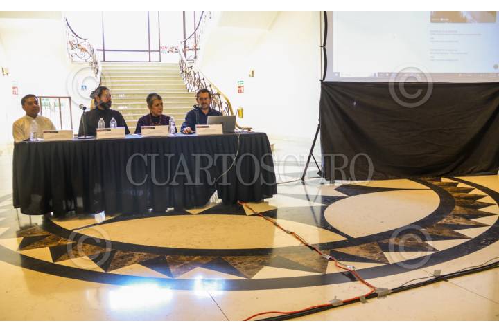 CIUDAD DE MÉXICO. 23FEBREEO2024.- Repositorio de Colecciones del Patrimonio Ferrocarrilero plataforma digital que pone a disposición del público los bienes y documentos históricos del ferrocarril en México, en el vestíbulo de la Casa Miguel Alemán del Complejo Cultural Los Pinos, participaron, Alberto Pacheco, Román Moreno, Teresa Márquez y Bruno Wilson Ebergenyi. FOTO: VICTORIA VALTIERRA/CUARTOSCURO.COM