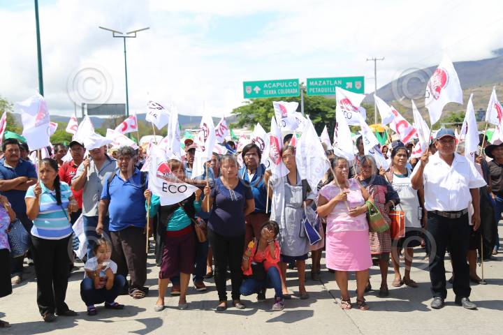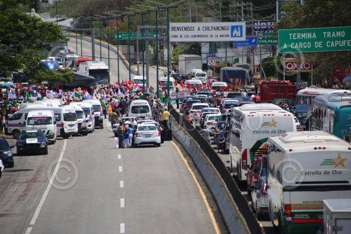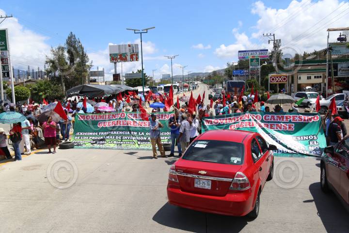 CHILPANCINGO, GUERRERO, 03JUNIO2019. Diferentes organizaciones campesinas como la Unión Nacional de Trabajadores Agrícolas (UNTA), Antorcha Campesina y Confederación Nacional Campesina (CNC), bloquearon la autopista del Sol en el punto conocido como parador del Marqués en Chilpancingo, para exigir la entrega del fertilizante que utilizaran en sus siembras. Pidieron una reunión con Víctor Villalobos Arámbula, titular de la Secretaría de Agricultura y Desarrollo Rural, para que les informe el número de beneficiados de este programa. FOTO: EDUARDO GUERRERO /CUARTOSCURO.COM