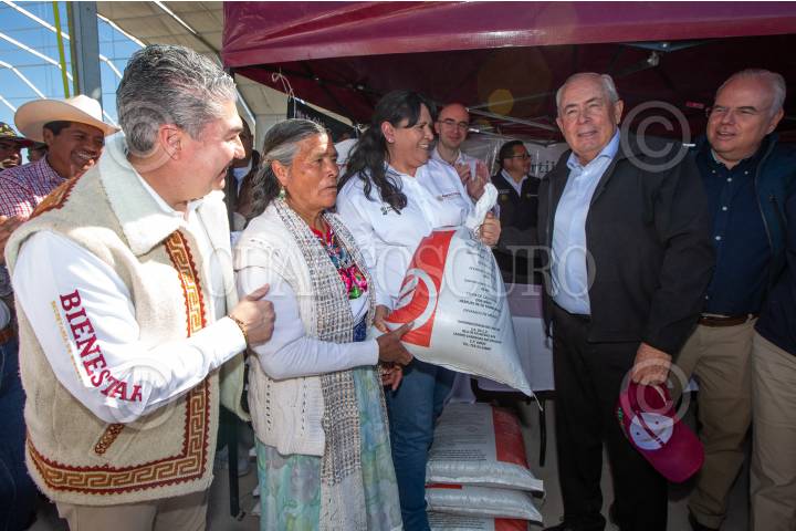 CIUDAD DE MÉXICO, 10SEPTIEMBRE2023.- La Secretaría de Agricultura y Desarrollo Rural informó que al cierre del mes de agosto, el programa Fertilizantes para el Bienestar ha beneficiado a casi 1.6 millones de productores de cultivos básicos, lo que representa un avance de 84 por ciento con respecto a la meta autorizada para este año. Al hacer un balance del programa prioritario con motivo del Quinto Informe de Gobierno del presidente Andrés Manuel López Obrador, el secretario de Agricultura y Desarrollo Rural, Víctor Villalobos Arámbula, detalló que ya suman 29 las entidades atendidas y se prevé llegar a las 32 a finales de octubre próximo. FOTO: SADER/CUARTOSCURO.COM