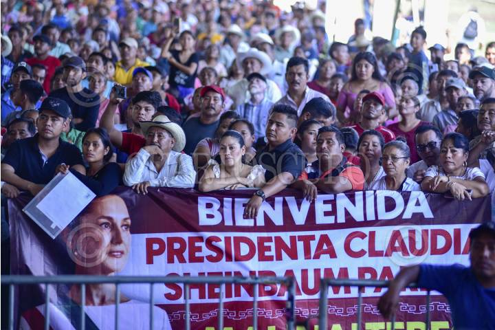 CRUZ GRANDE, GUERRERO,18ENERO2025.- La presidenta Claudia Sheinbaum Pardo y Evelyn Salgado Pineda, gobernadora de Guerrero, visitaron el municipio de San Luis Acatlán en la región de la Costa Chica de Guerrero para el entregó de fertilizantes a campesinas y campesinos de la entidad. FOTO: CARLOS CARBAJAL/CUARTOSCURO.COM