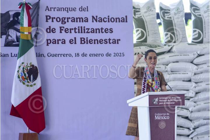 CRUZ GRANDE, GUERRERO,18ENERO2025.- La presidenta Claudia Sheinbaum Pardo visito el municipio de San Luis Acatlán en la región de la Costa Chica de Guerrero para el entregó de fertilizantes a campesinas y campesinos de la entidad. FOTO: CARLOS CARBAJAL/CUARTOSCURO.COM