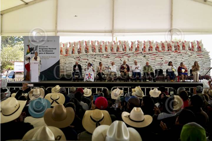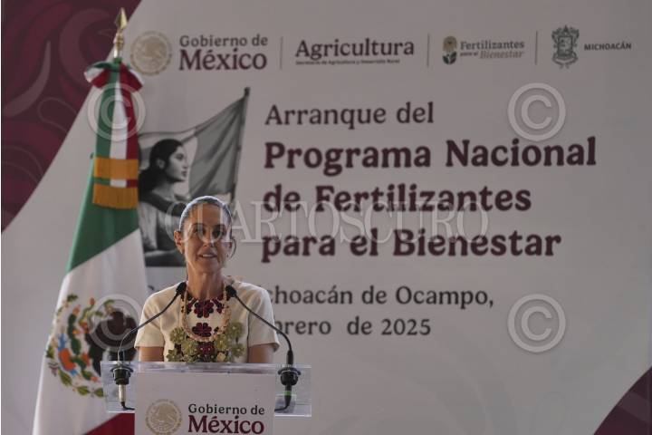 CUITZEO, MICHOACÁN, 07FEBRERO2025.- Claudia Sheinbaum, presidenta de México, encabezó el arranque del Programa Nacional de Fertilizantes para el Bienestar en Cuitzeo, Michoacán, para el apoyo a las y los agricultores michoacanos. FOTO: PRESIDENCIA/CUARTOSCURO.COM