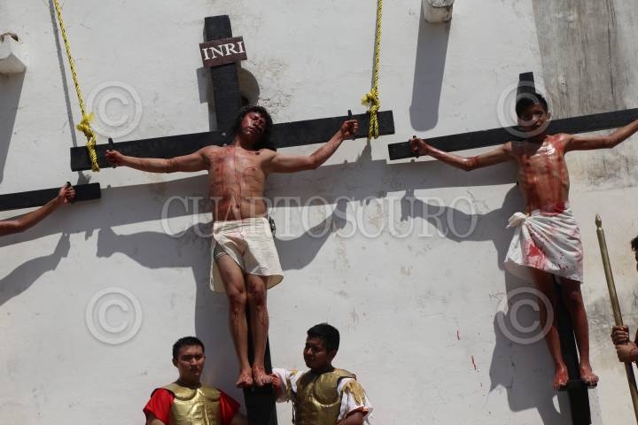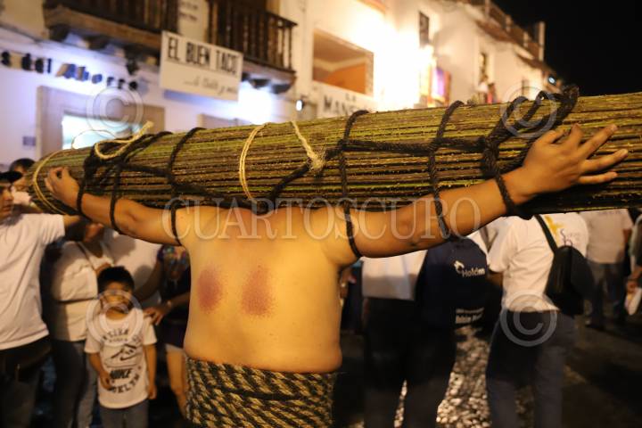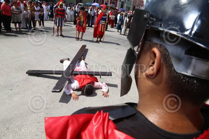 CAMPECHE, CAMPECHE, 30MARZO2018.- Decenas de católicos pertenecientes a la iglesia de San Román, realizaron la tradicional representación del Viacrucis Viviente, que como parte de los festejos de Semana Santa recorrieron las principales calles de esta ciudad. FOTO: MARTÍN ZETINA / CUARTOSCURO.COM