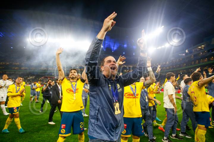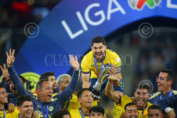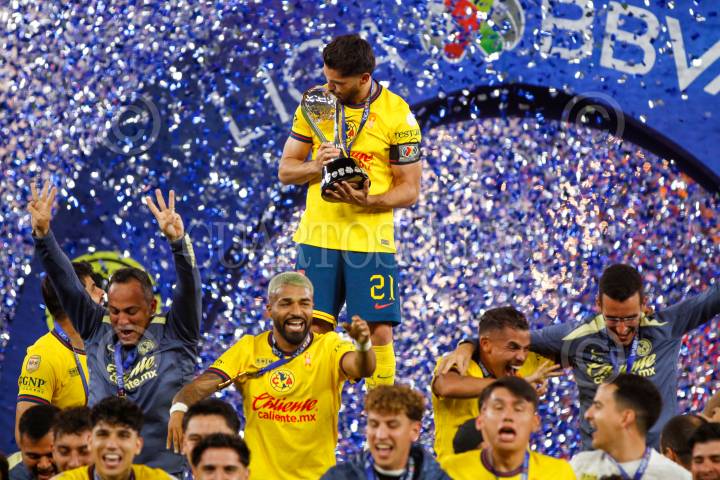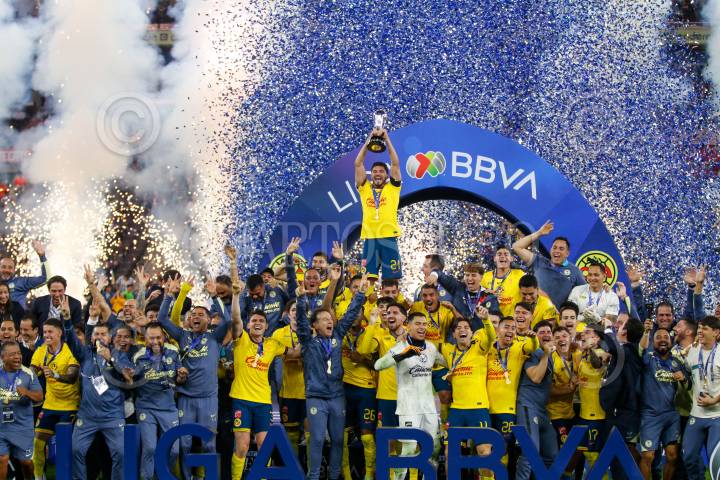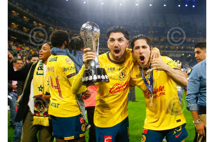 GUADALUPE, NUEVO LEÓN, 15DICIEMBRE024.- El América festeja el tricampeonato tras vencer a los Rayados del Monterrey 3 goles a 2 en marcador global en el estadio BBVA, en la Apertura 2024FOTO: GABRIELA PÉREZ MONTIEL / CUARTOSCURO.COM