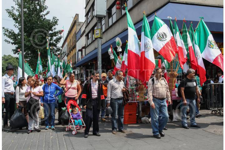 MÉXICO, D.F., 15SEPTIEMBRE2015.- Previo a la celebración del Grito de Independencia, la rutina diaria de los capitalinos continúa. El comercio de productos alusivos a las Fiestas Patrias aumenta en el primer cuadro de la ciudad. FOTO: MARÍA JOSÉ MARTÍNEZ /CUARTOSCURO.COM