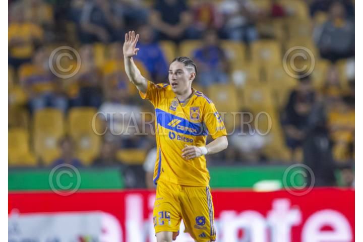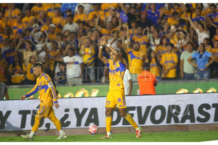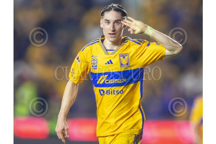SAN NICOLÁS DE LOS GARZA, NUEVO LEÓN, 19JULIO2025.- Jonathan Herrera de Tigres, festeja el gol ante el FC de Juárez, en el estadio Universitario, en el partido correspondiente a jornada 2 de la Apertura 2025. Marcador final: Tigres: 1 - FC Juárez: 0. FOTO: GABRIELA PÉREZ MONTIEL / CUARTOSCURO.COM