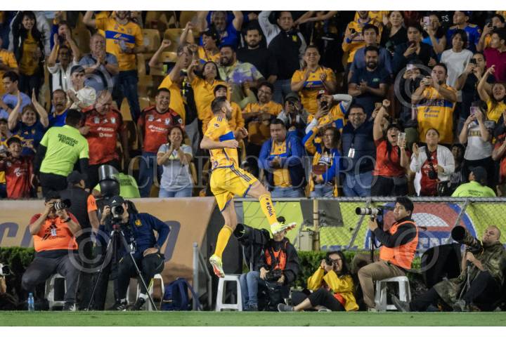 SAN NICOLÁS DE LOS GARZA, NUEVO LEÓN, 27OCTUBRE2024.- Ozziel Herrera, de los Tigres, festeja el gol ante el Pachuca, en el estadio Universitario, partido correspondiente a la jornada 14 de la Apertura 2024. Marcador Final: Tigres: 2 - Pachuca: 1. FOTO: GABRIELA PÉREZ MONTIEL / CUARTOSCURO.COM