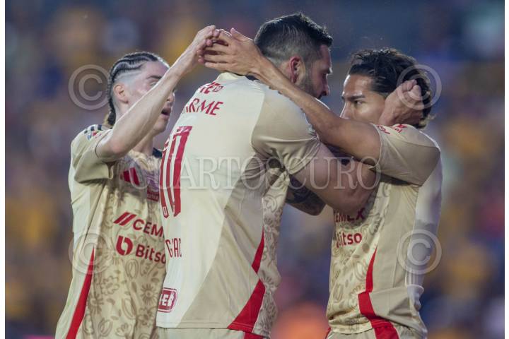 SAN NICOLÁS DE LOS GARZA, NUEVO LEÓN, 06NOVIEMBRE2024.- André-Pierre Gignac de los Tigres, festeja el gol ante el Toluca, en el estadio universitario, partido correspondiente a la jornada 16 de la Apertura 2024. Marcador Final: Tigres: 2 - Toluca: 1. FOTO: GABRIELA PÉREZ MONTIEL / CUARTOSCURO.COM