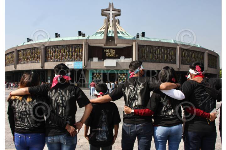 Dos hombres portan pañuelo con imagen de la Virgen de Guadalupe en la frente. FOTO: ROGELIO MORALES /CUARTOSCURO.COM