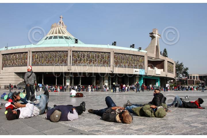 Peregrinos descansan frente a la Basílica durante las primeras horas del día. FOTO: ROGELIO MORALES /CUARTOSCURO.COM