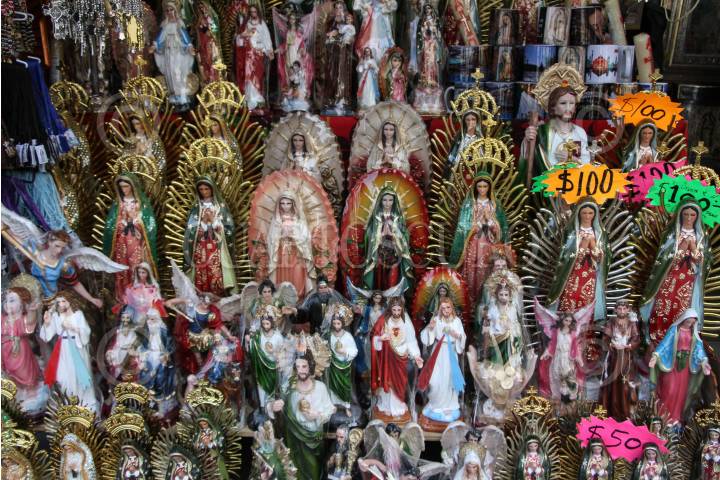 Imágenes de la Virgen en oferta, por cierre durante festejos. FOTO: ROGELIO MORALES /CUARTOSCURO.COM