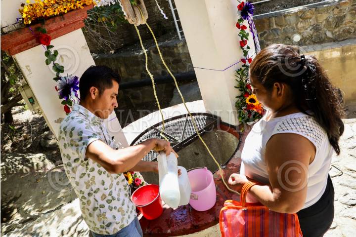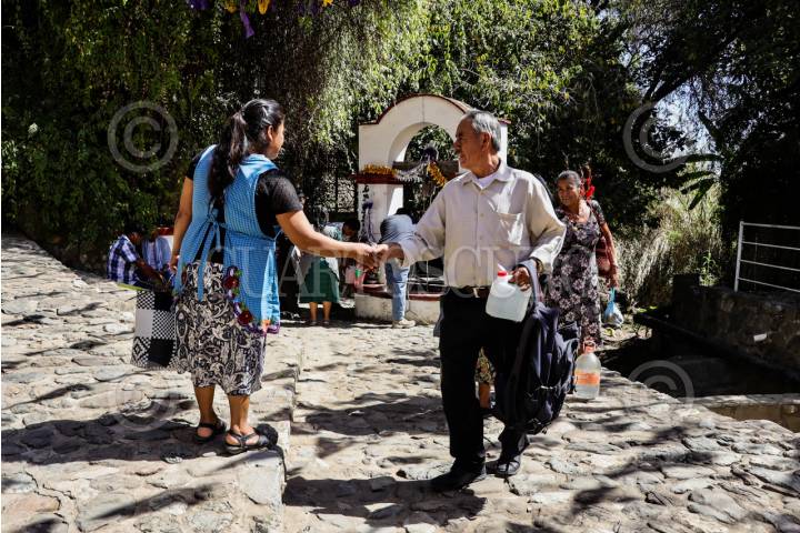 SAN ANDRÉS HUAYAPAM, OAXACA, 14FEBRERO2024.- En este miércoles de ceniza, decenas de personas visitan El Pocito en San Andrés Huayapam, municipio conurbado a la capital de Oaxaca, lugar en donde colectan agua que beben y también llevan a sus pozos o cultivos. Las personas tienen la creencia que al verter está agua en sus pozos o sembradíos durante todo el año no faltará este líquido y habrá buena cosecha. FOTO: CAROLINA JIMÉNEZ/CUARTOSCURO.COM