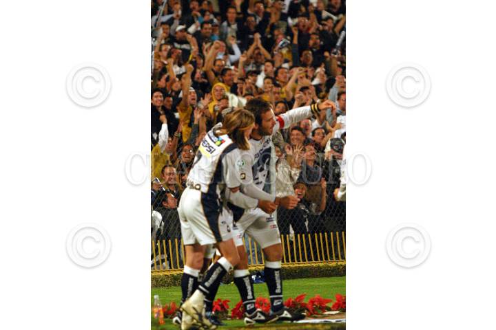 MEXICO, D.F. 08 DICIEMBRE 2004.- Joaquín Beltrán festejó el gol de Pumas con Leandro Augusto, en el partido de ida del torneo de apertura 2004 en el estadio México 68 donde se enfrentaron a los rayados del Monterrey. FOTO: Sandra Perdomo /CUARTOSCURO.COM