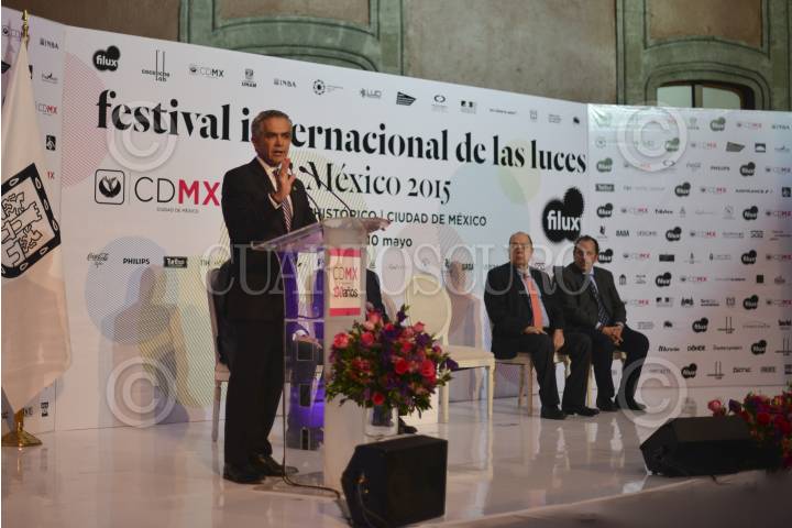 MÉXICO, D.F., 07MAYO2015.- Miguel Ángel Mancera, jefe de gobierno del Distrito Federal, inauguró la segunda edición del Festival Internacional de las Luces México 2015 FILUX a realizarse del 07 al 10 de mayo de 19:00 hrs a 00:00 hrs. FOTO: ADOLFO VLADIMIR /CUARTOSCURO.COM