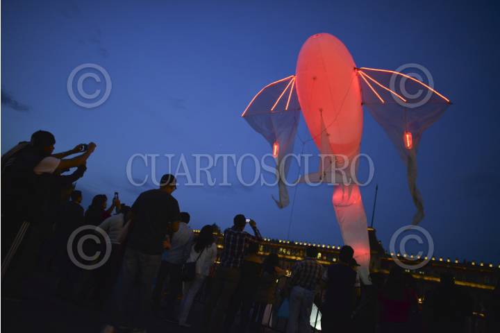 MÉXICO, D.F., 07MAYO2015.- En la Plaza de la Constitución, se presenta la creación "Los Lumineoles", de Porte Part Le vent, como parte de la segunda edición del Festival Internacional de las Luces México 2015 FILUX a realizarse del 07 al 10 de mayo de 19:00 hrs a 00:00 hrs en diferentes sedes. FOTO: ADOLFO VLADIMIR /CUARTOSCURO.COM