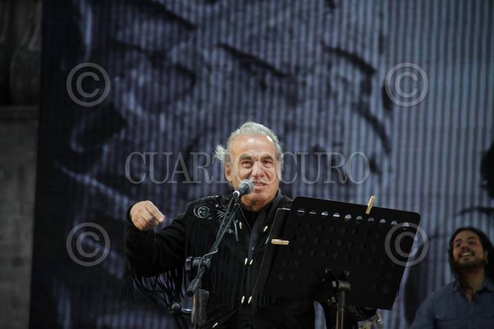 CIUDAD DE MÉXICO, 20MARZO2016.- El cantautor Óscar Chávez ofreció un concierto en el zócalo, dentro de las actividades del Festival del Centro Histórico. El interprete celebró este domingo medio siglo de carrera artística y su cumpleaños número 81. FOTO: ANTONIO CRUZ /CUARTOSCURO.COM