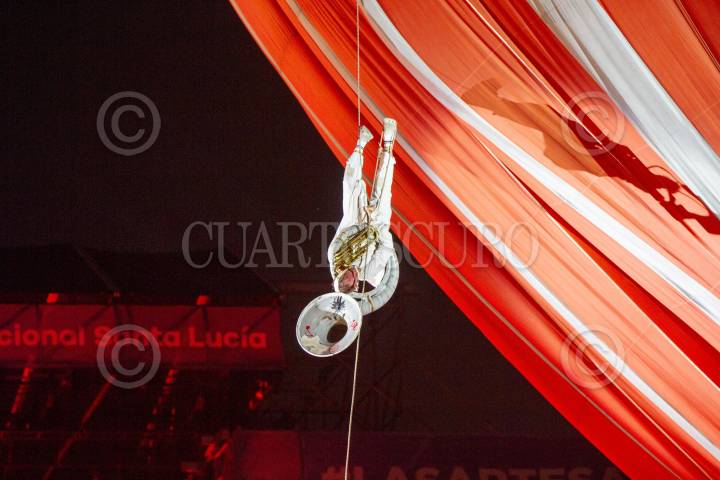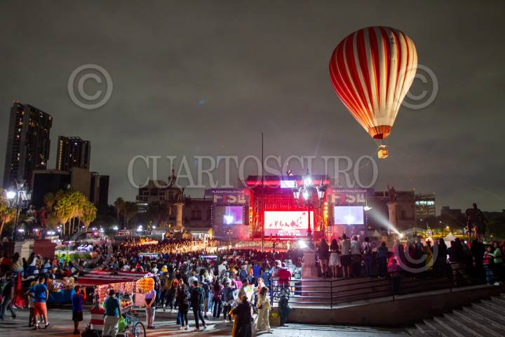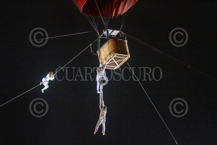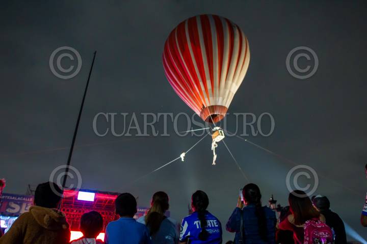 MONTERREY, NUEVO LEÓN, 20OCTUBRE2024.- Se presentó el espectáculo circense “EXIT” de la compañía francesa Cirque Inextremiste en la explanada de los Héroes. Los acróbatas realizaron el show en un globo aerostático de 3400 metros cúbicos como parte de la inauguración del Festival Internacional Santa Lucía 2024. FOTO: GABRIELA PÉREZ MONTIEL / CUARTOSCURO.COM
