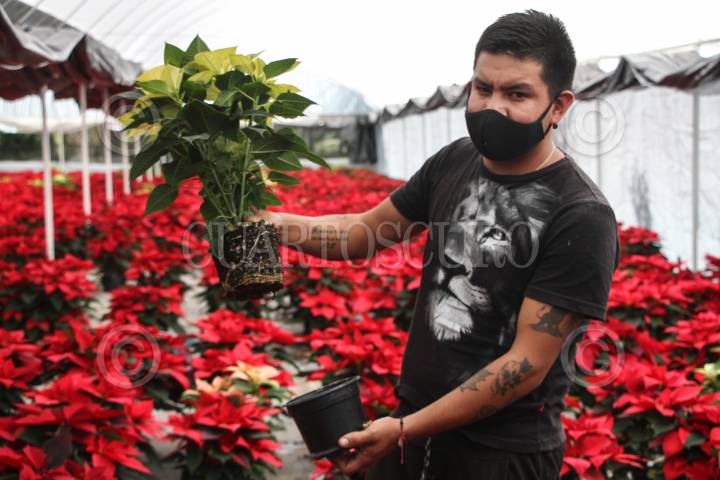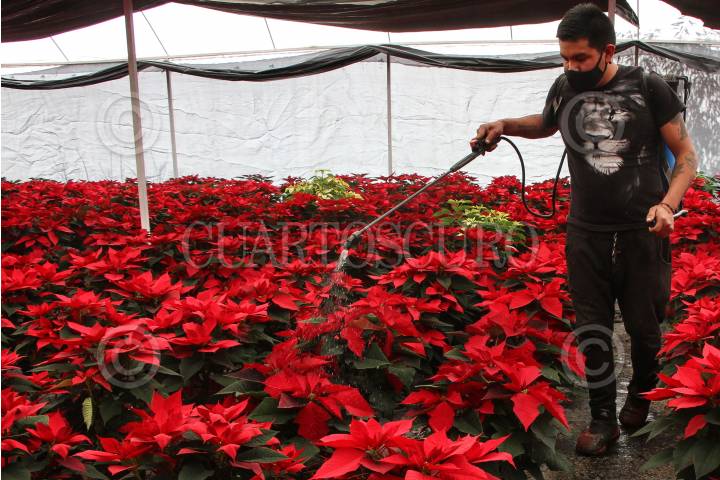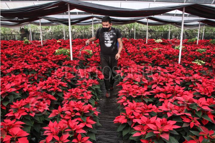 Aspectos de riego de nochebuena en invernadero de la alcaldía Xochimilco. FOTO: ROGELIO MORALES /CUARTOSCURO.COM