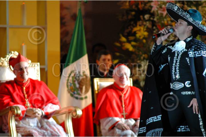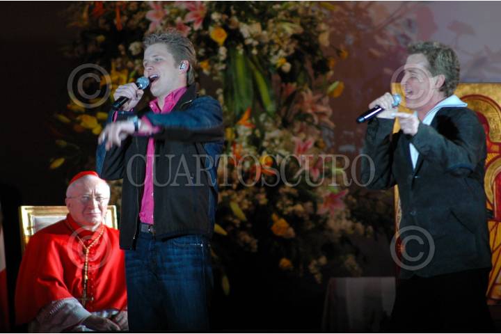 MÉXICO D.F., 17ENERO2009.- El cantante Pedro Fernandez durante su actuación en el evento festivo testimonial que se realiza en la explanada de la Basilica de Guadalupe y que forma parte de las actividades del VI Encuentro Mundial de las Familias. FOTO: RODOLFO ANGULO/CUARTOSCURO.COM