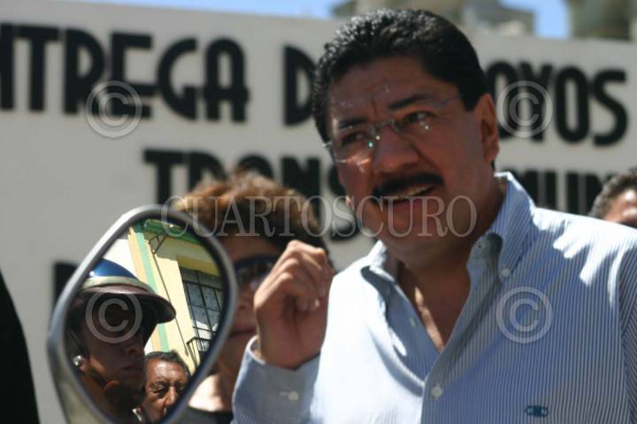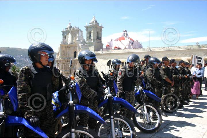 OAXACA, OAXACA 26OCTUBRE2007.-El gobernador del estado Ulises Ruiz Ortiz, aplico hoy el plan festivo donde se pretende organizar y resguardar por parte de operativos policíacos de la policía ministerial y preventiva por lo que esta misma tarde entrego equipo, 3 camionetas y 25 motos con el fin de una mayor coordinación para vigilancia. FOTO: MAX NUÑEZ/CUARTOSCURO.COM