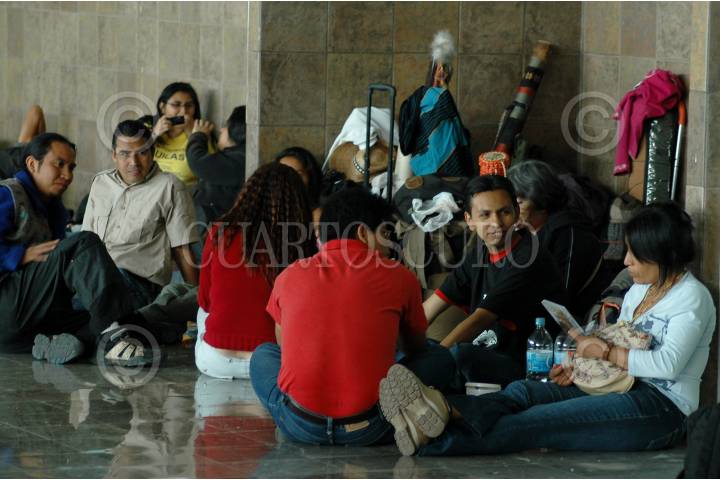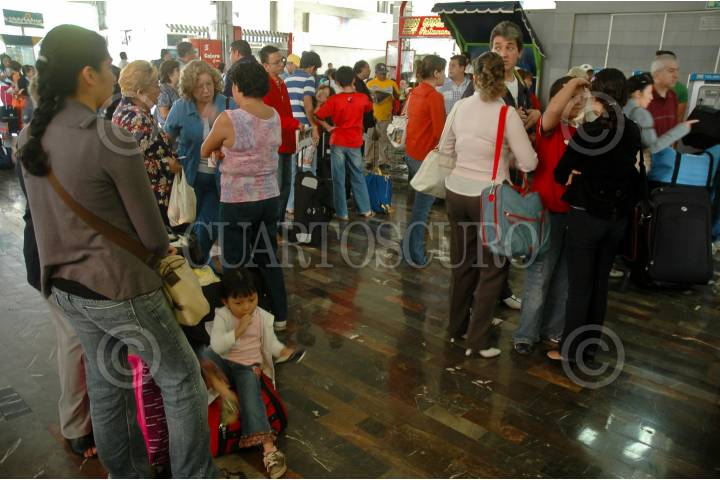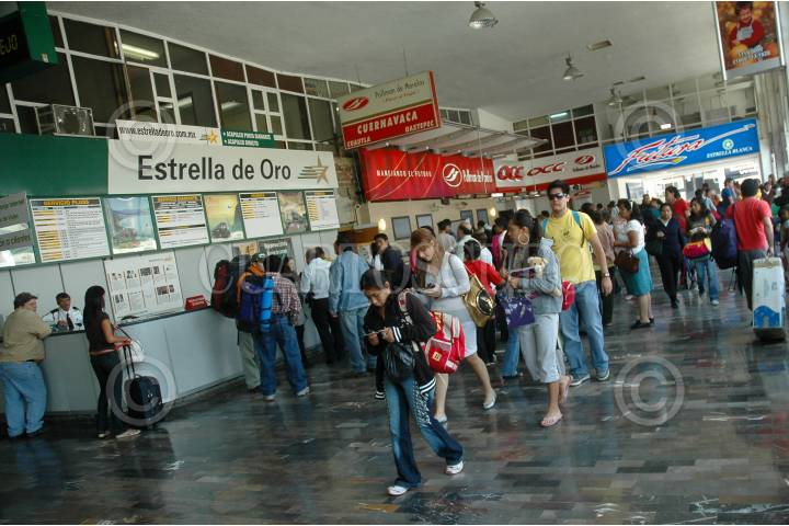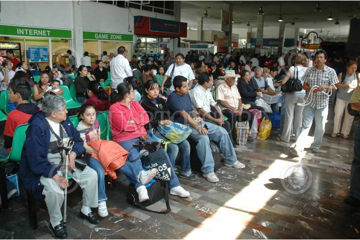 MÉXICO D.F., 01MAYO 2008.- Decenas de personas esperan su autobús en la Central de Autobuses del sur para aprovechar este puente por motivo de días festivos. FOTO: RODOLFO ANGULO/CUARTOSCURO.COM