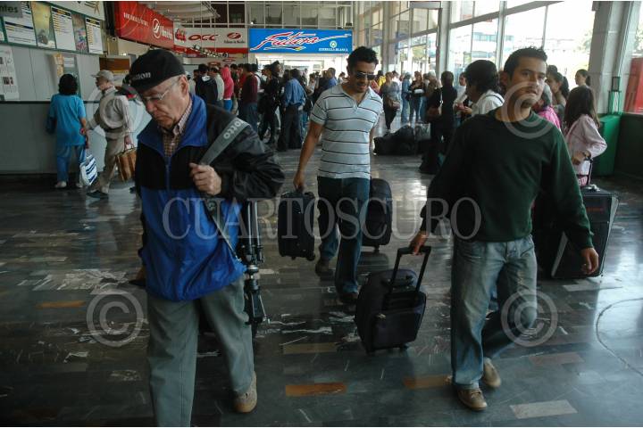 MÉXICO D.F., 01MAYO 2008.- Decenas de personas acuden a la Central de Autobuses del sur para salir de la ciudad aprovechando este puente por motivo de días festivos. FOTO: RODOLFO ANGULO/CUARTOSCURO.COM